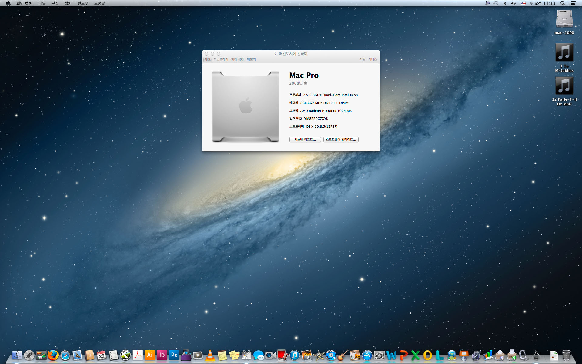 CPU : 맥프로 2.8GHz 8코어(2x2.8GHz Quad-Core) Intel Xeon