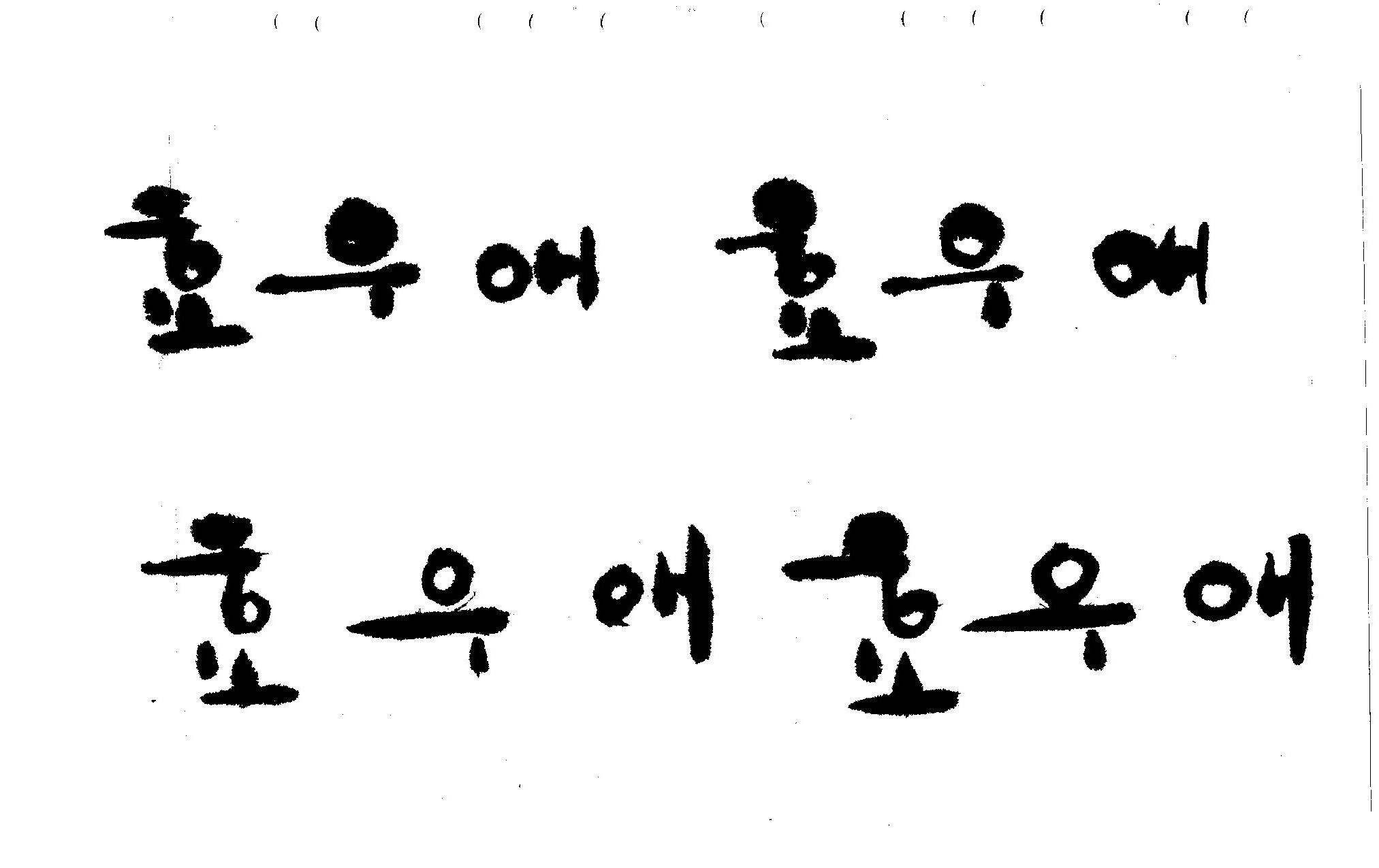 캘리 부탁드려도 될까요.??? 김철호 일반 0 8524 2008.12.23 23:46 > > 저는 카드사에서 카드디자인을 하고 있습니다. > 이번에 효/우/애에 맞춰 기프트카드를 디자인하고 있는데 > 다양한 비쥬얼 처리보다는 효우애에 맞는 캘리로 처리하는것이 좋을거같아 > 이렇게 부탁드립니다. > > 한글로...되도록 프리핸드 느낌이 많았으면 하는데... > 효 우 애 > > 도와주세요!! ^^; > 수고 없는 결과 물이 없습니다,,, 유용하게 쓰시길..