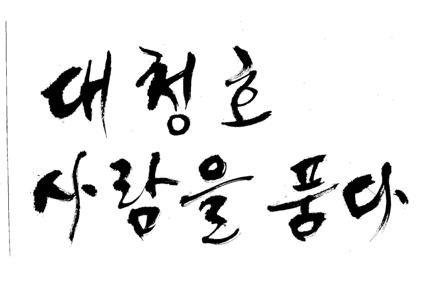 캘리 부탁드려요 김철호 일반 0 5497 2009.06.03 12:12 > > > > > 대청호 > > 사람을 품다 > > > > - 방송용 다큐멘터리에 들어갈겁니다 > > 죄송합니다만 빨리 부탁드려요 > > 두줄로 가운데 맞춤으로 써주세요 - > > > > 줄맞춤은 알아서... >